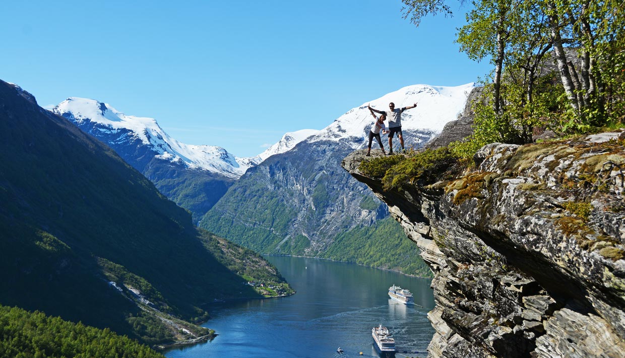 Ta elsykkelen fatt og følg en jevn stigning gjennom Geiranger og opp til Flydalsjuvet, et av fjordens mest kjente utsiktspunkt. På vei opp mot Flydalsjuvet kan du blant annet sitte på det berømte “Fjordsetet”, innviet av Dronning Sonja i 2003. På vei opp til toppen 300 m over havet finner du mange vakre utsiktsposter hvor du kan hente igjen pusten mens du nyter den vakre utsikten.