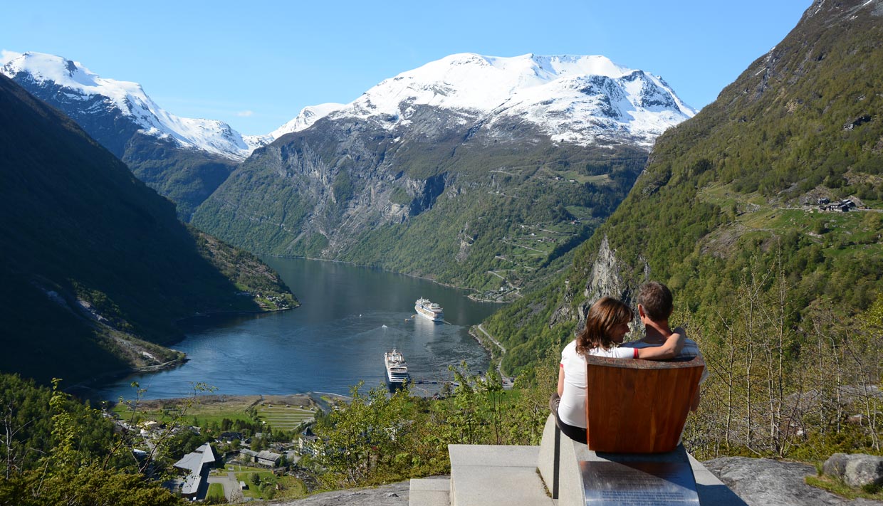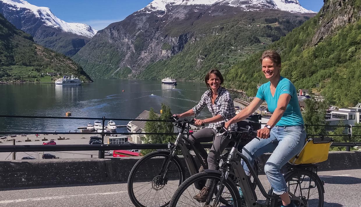 Her kan du kombinere el-sykkeltur til Flydal med fottur til Vesterås og Storsæterfossen, og nyte vaffel - og kaffepause ved gårdskaféen Westerås. På turen opplever du mye av Geiranger på kort tid. Ruten starter ved Geiranger havn og følger en jevn stigning opp til Flydalsjuvet, som er et av de mest kjente utsiktspunktene i Geiranger. Denne strekningen byr på mange flotte utsiktsposter hvor du kan ta en pust i bakken før du fortsetter ferden.