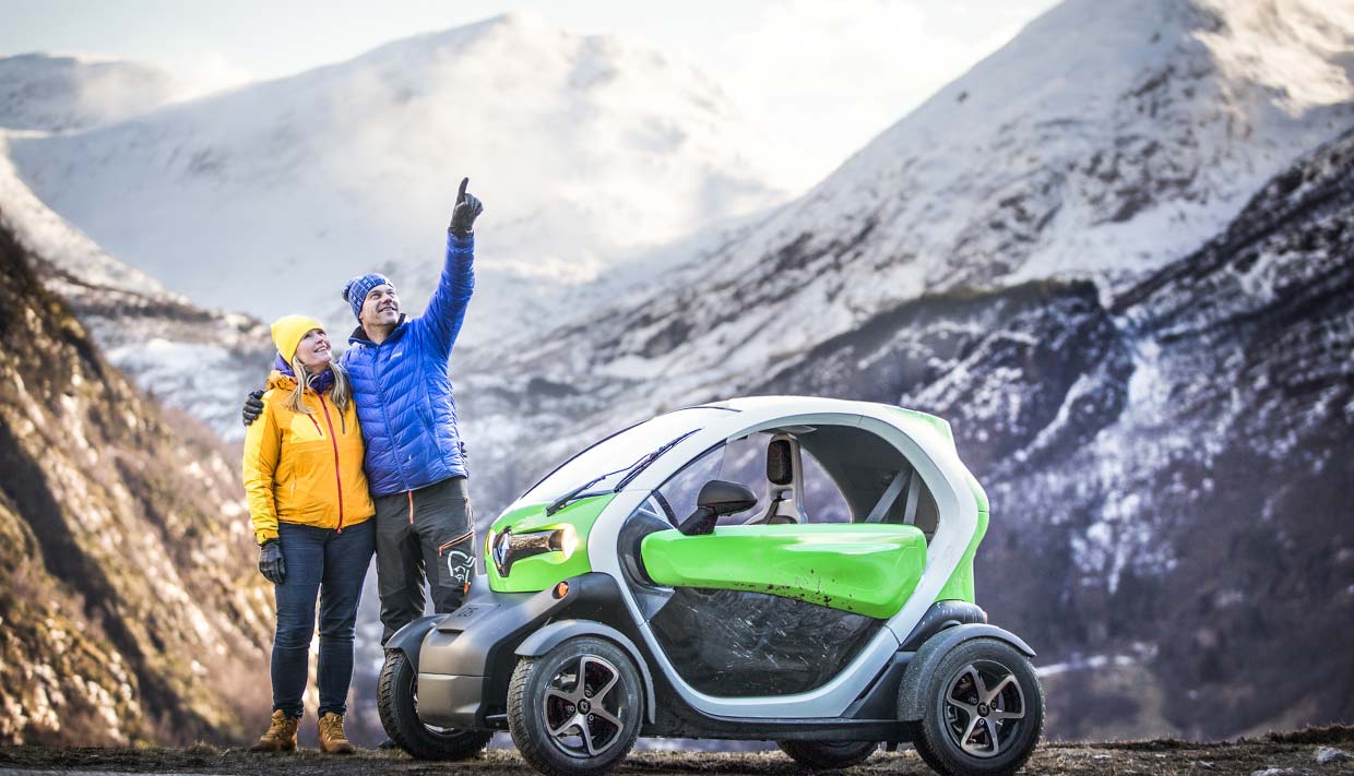 An electric car is an entertaining, eco-friendly and fun way of discovering the Geiranger area.