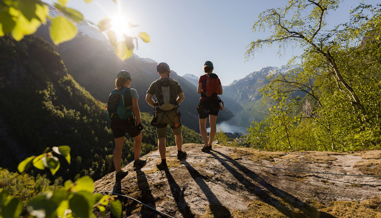 Explore Geiranger har no etablert en bratt sti sikret med tau hele veien opp til Flydalsjuvet. Dette er en sti der du må bruke klatresele og JUMAR (sikringsmiddel). Bratte opptak og enkel klyving - trygt og spennende!