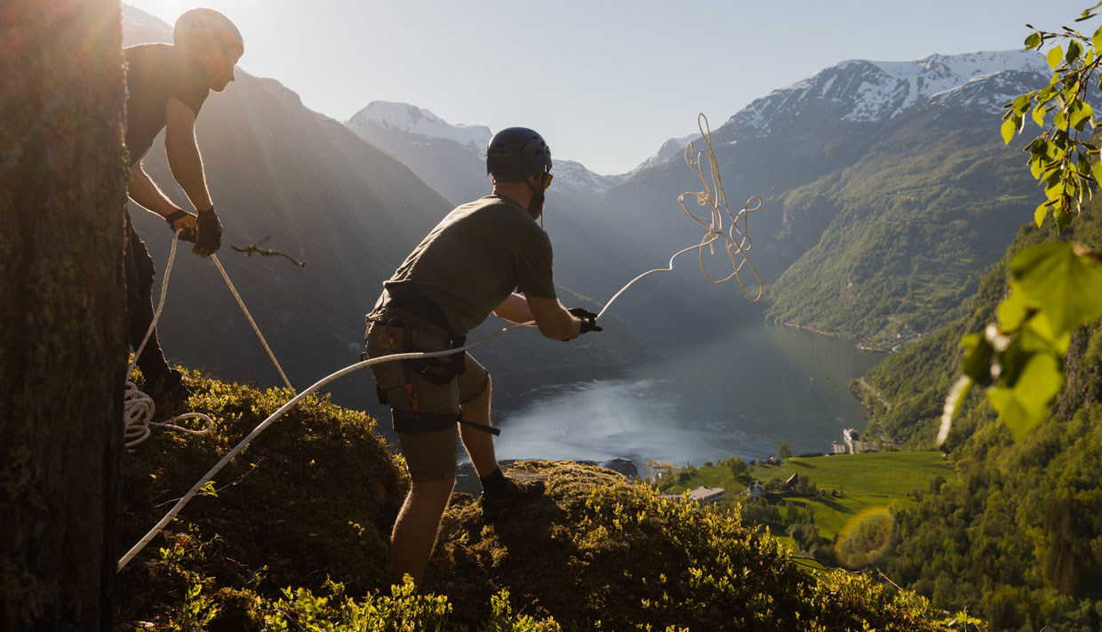 Vertikal-veggen (50 høydemeter): vi lover fantastisk utsikt over Geiranger. Du vil kjenne litt på magesuget, men det er trygt:)