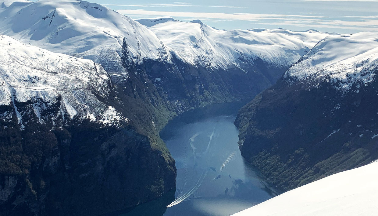 Turen går med vår moderne fjordbåt fra de smale sunda i kystbyen Ålesund og inn fjorden mot hjertet av UNESCO området Geiranger. Mens du sitter komfortabelt i fjordbåten får du oppleve hvordan stemningen skifter etter hvert som landskapet forandrer seg — fra det åpne ved kysten til det dramatiske og meir mystiske lenger inne i landet.